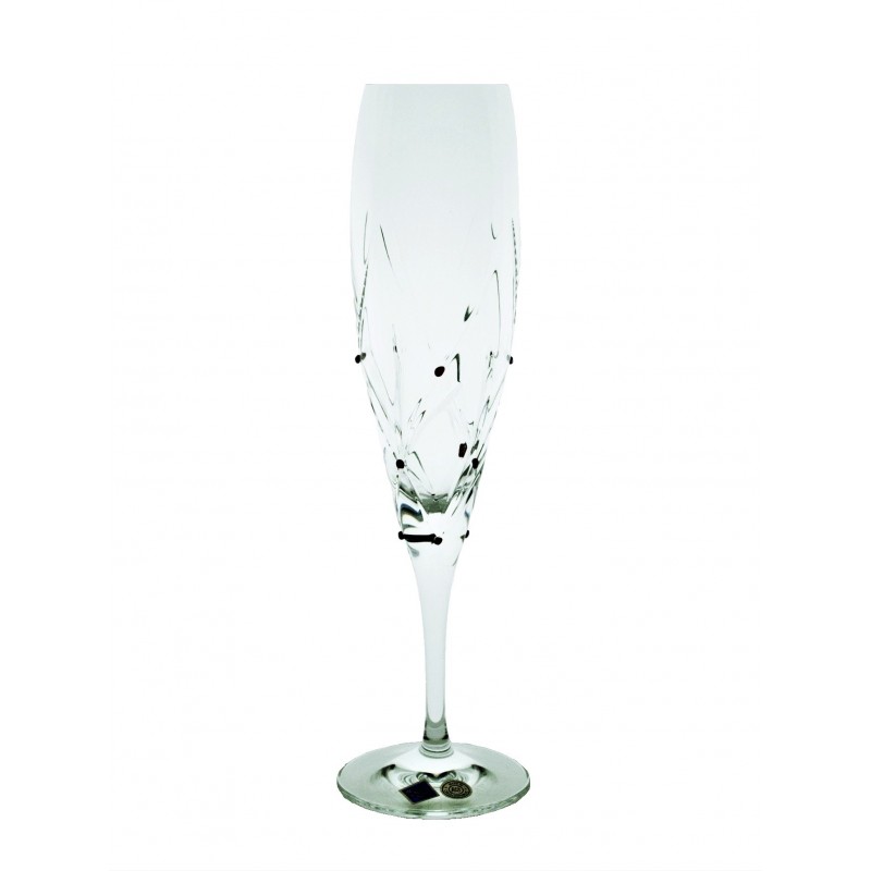 Beautiful glass flutes 2 pcs (for champagne) made from full lead crystal decorated with cut and natural garnets.